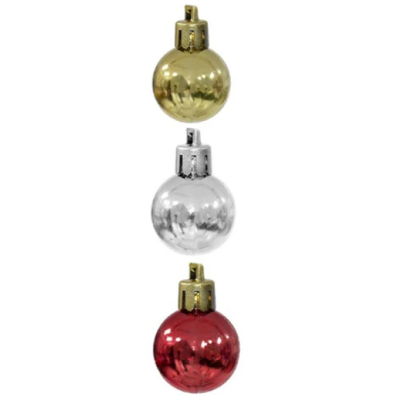 Bolas de natal 3cm metalizadas Vermelha, Dourada e Prata c/08 Florarte.