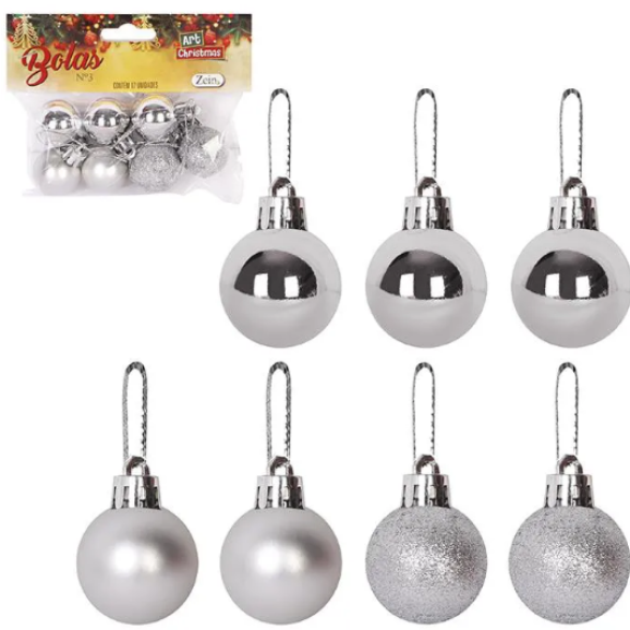 Bolas de natal 3cm mista prata c/07 Zein.