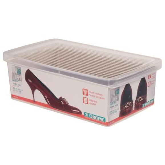Caixa organizadora para sapato tamanho médio com as seguintes medidas: 19 x 31 x 10cm