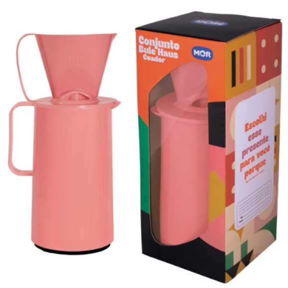 O café da manhã ficou ainda mais prático! O Conjunto de Bule + Coador foi pensado para completar a linha de térmicos e deixar a cozinha mais sofisticada. O modelo ?Haus? conta com um bico direcionador que evita respingos e a ampola de vidro proporciona melhor conservação aos líquidos. Além de uma alça anatômica, foram desenvolvidos com um novo modelo de rolha que facilita o manuseio, encaixa melhor a sua mão na hora de abrir/fechar e dá mais segurança ao controle de fluxo. Com leveza e resistência na medida certa, o Coador é extremamente prático na hora de passar aquele cafezinho sem nenhum esforço. Basta encaixar na boca do bule, colocar o filtro de papel, o café e a água por cima! Conta também com uma alça prática, possuem acabamento brilhoso e superfície lisa que facilitam na hora da limpeza. Excelente opção para presentear amigos e familiares ou oferecer como brinde aos parceiros e colaboradores!