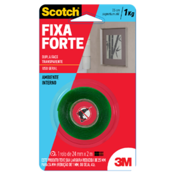 Fita dupla face fixa forte transparente 3M.