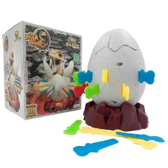 Quem será o corajoso a completar o desafio sem liberar o dinossauro? Entre na era dos dinossauros com o emocionante Jogo Pula Dino! Um jogo super divertido que desafia a habilidade e a sorte de todos os jogadores. Quem será o corajoso a completar o desafio sem liberar o dinossauro? Como funciona: O jogo vem com 1 ovo de dinossauro e 16 fragmentos para serem colocados. A cada rodada, um jogador insere um fragmento no ovo. Mas cuidado! Se você escolher o buraco errado, o ovo se abre e um mini dinossauro salta de dentro, trazendo muita emoção e risadas! Com suas medidas de 13 cm de altura e 10 cm de largura, o Jogo Pila Dino é perfeito para animar as tardes com a família e amigos, promovendo uma experiência divertida e imprevisível.