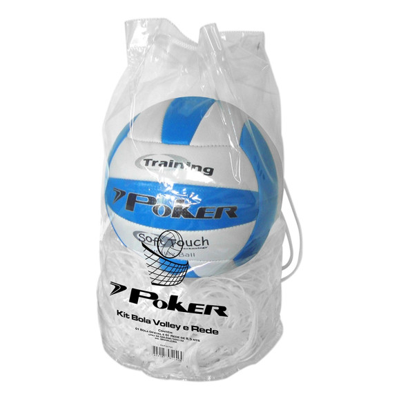 Kit rede e bola de vôlei Poker.