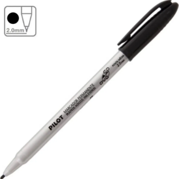 O Marcador para CD/DVD da Pilot foi desenvolvido com tinta especial resistente à água. - Ponta fina 2.0mm resistente de poliéster com protetor de metal. - tinta à base de álcool. - espessura de escrita 0,5mm. - ideal para cd, dvd, plásticos, vinil, acrílicos, vidros e filmes. - tinta resistente à água - corpo redondo