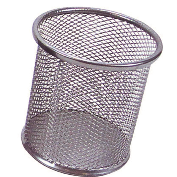 Porta lápis redondo em aramado prata Kit.
